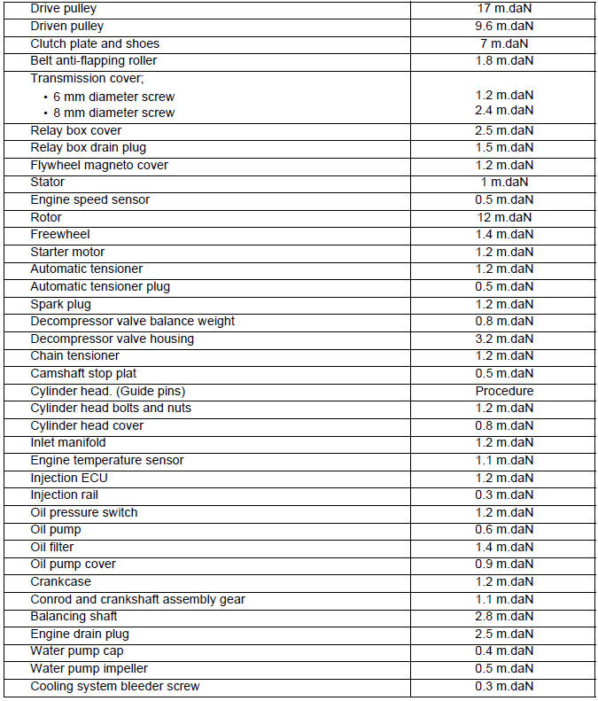 Peugeot Satelis - Service manual > Symbols, Characteristics, Service Schedule