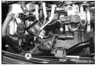 NOTICE Do not remove or adjust the throttle sensor [A] since it has been adjusted and set with precision at the factory.
