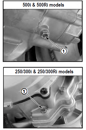3. Remove the transmission fluid filler bolt 2, then slowly rotate the rear wheel to drain the fluid. After the fluid has drained out, reinstall the drain bolt with a new sealing washer and tighten it to the specified torque.